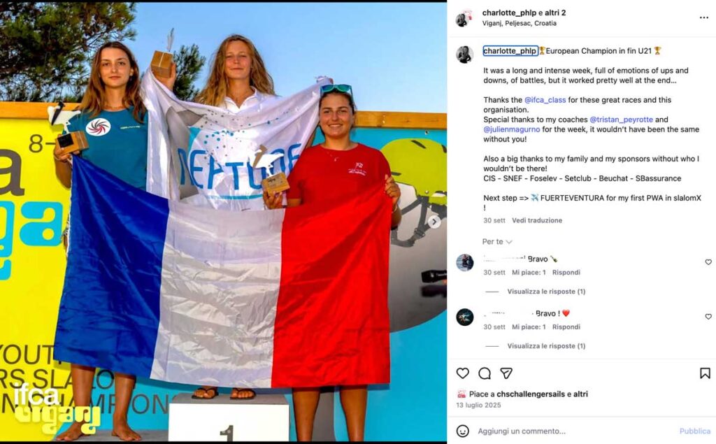 In 2024, at the IFCA Youth & Junior Slalom World Championships in Hvide Sande (Denmark), Sacha Fortune (FRA-655) claimed the Youth Men Fin Slalom World
